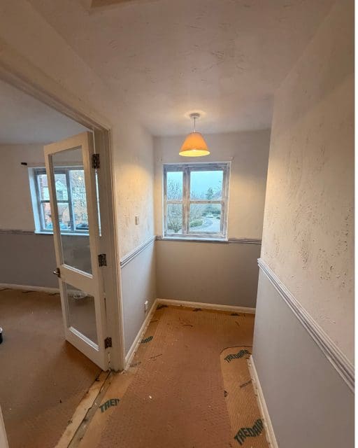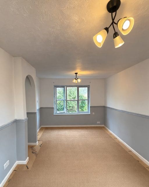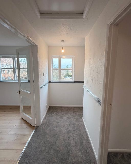 The project began with a complete redecoration of all rooms. Walls and ceilings were carefully prepared and finished in a clean, contemporary white, enhancing natural light and creating a fresh, neutral backdrop ready for any style of furnishing. Subtle detailing, including the mid-wall trim, was retained and refreshed to add character while maintaining a modern aesthetic.